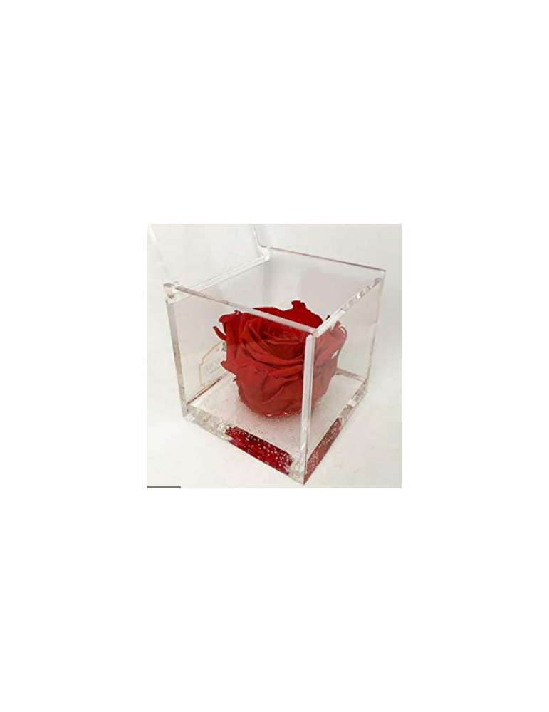 Rose éternelle tête en cube plexiglas