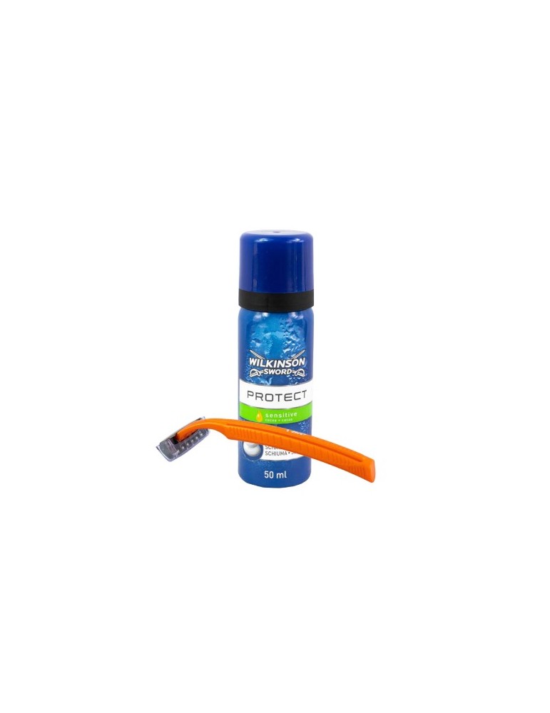 Kit rasage composé d'un rasoir Bic jetable et d'une mousse à raser Wilkinson